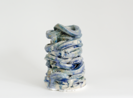 The selection of work for the exhibition includes pieces from two artistic residencies that Gileva attended in China and Japan to study traditional pottery methods, a line of enquiry which she still continues. The way that she twists and braids the clay hints at another timeless, ancestral practice in her work: that of weaving. Gileva’s work embodies the age-old interaction between the maker and the object, and to a certain extent, between the distant past and the present.